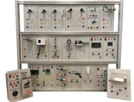 • Includes a robust benchtop mounting frame panel for setting up training modules used in experiments.